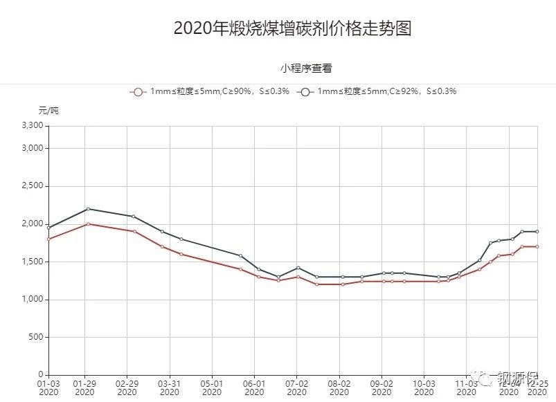 自第四季度起,價格出現(xiàn)大幅度增長,漲幅更是一度達到46.2%。整個四季度價格處于沸騰階段,廠家看漲心切,截止年末,C≥90%煅燒煤增碳劑價格維持在1700元/噸(出廠含稅)的較高水平。